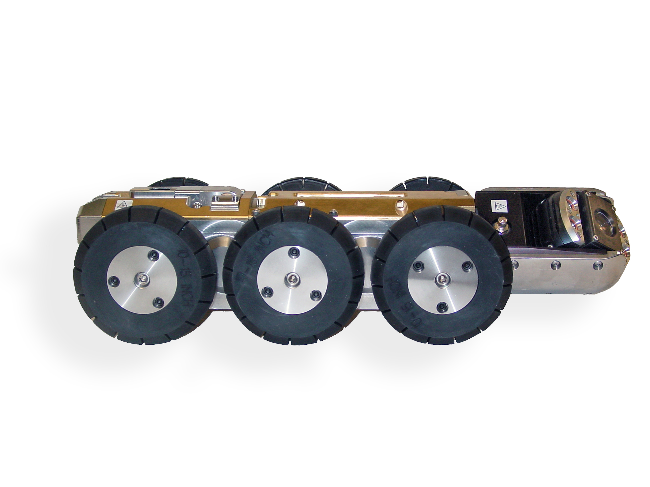 - Multiple wheel sets are available to maximize bottom-clearance, traction, and optimize camera position; High-traction wheels are available for slippery PVC pipe; Wheels can be installed or removed from a single point of contact.