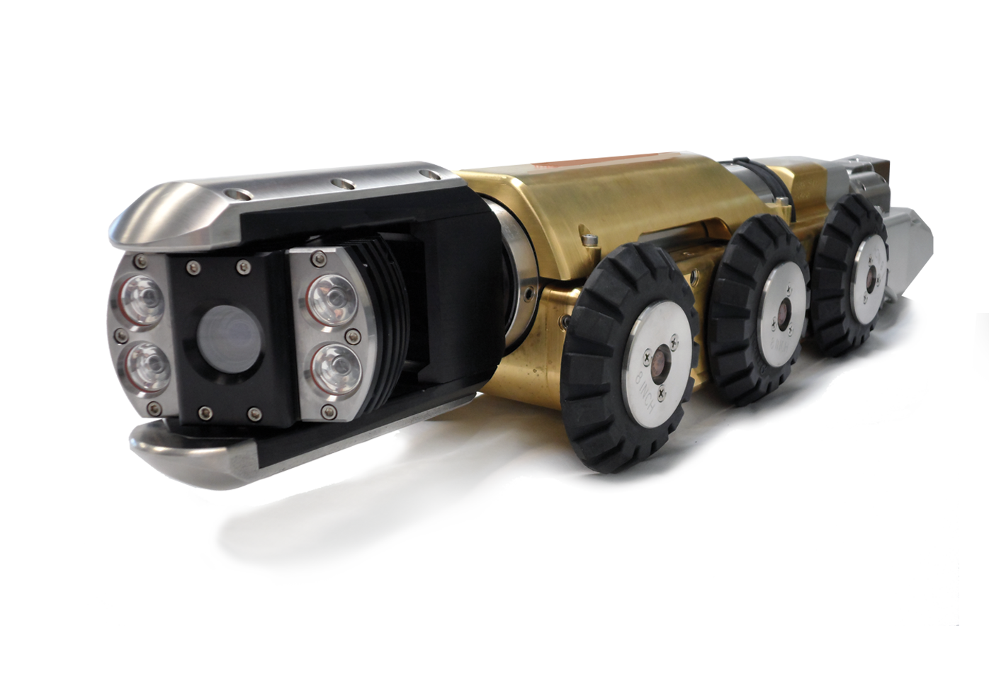 - Designed to provide clearance in a 7” diameter pipe; can inspect 8” relined pipe.