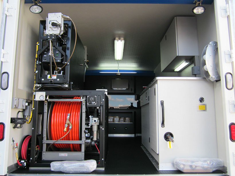With our in-house, state-of-the-art Vehicle Assembly Center, CUES can substantially reduce the manufacturing time required for your turn-key CCTV truck mounted system! Customize your truck interior, cabinets, equipment, and mounting configuration to fit your unique requirements! Depending on the specific vehicle, chassis are available in diesel, gas, and natural gas configurations. Optional dry freight box mounted systems are also available.