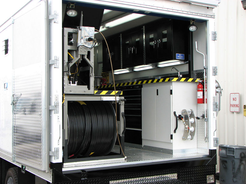 With our in-house, state-of-the-art Vehicle Assembly Center, CUES can substantially reduce the manufacturing time required for your turn-key CCTV truck mounted system! Customize your CCTV truck interior, cabinets, equipment, and mounting configuration to fit your unique requirements! Depending on the specific vehicle, chassis are available in diesel, gas, and natural gas configurations. Optional dry freight box mounted systems are also available.